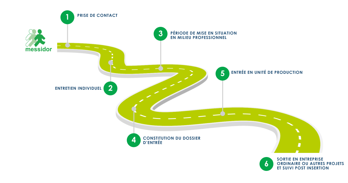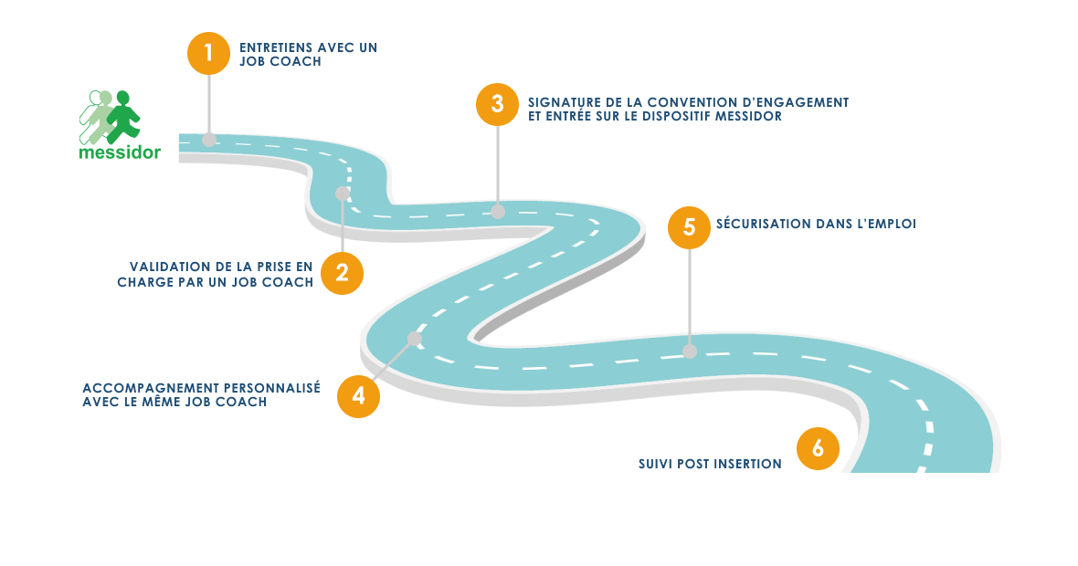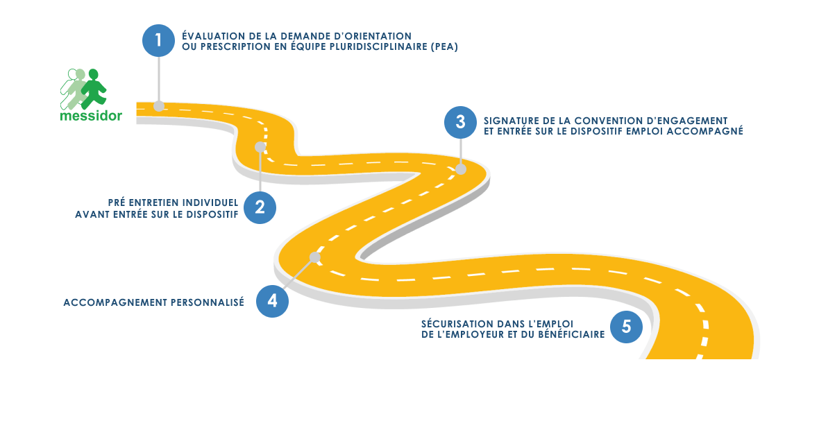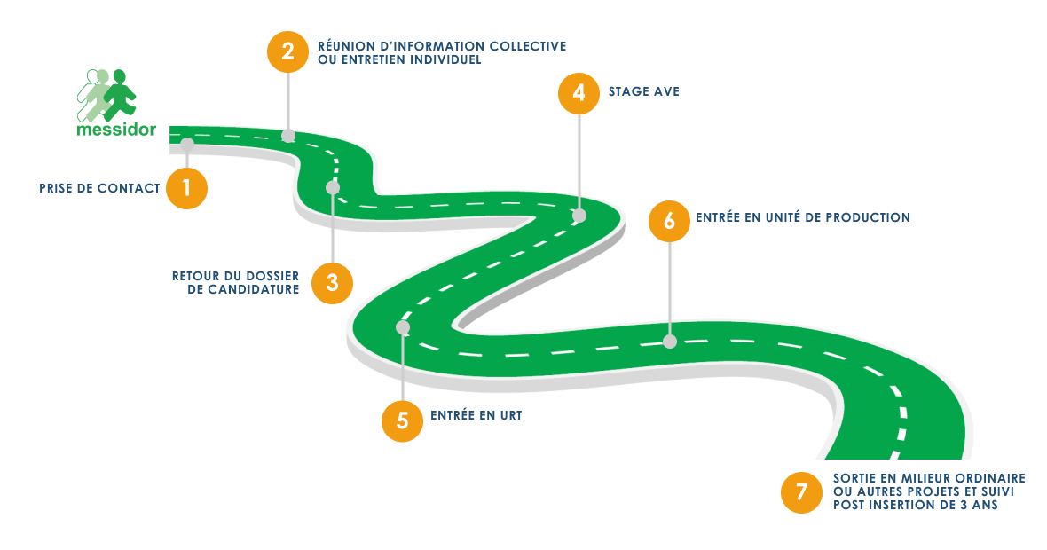 de la personne. L’accompagnement ne prend fin que lorsque la personne estime être autonome, avoir un bien-être au travail et ne plus avoir besoin de Messidor.
